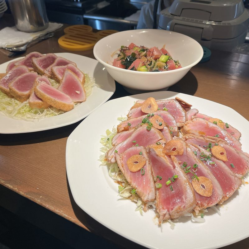 刺身、漬けマグロだけでなく、マグロカツ、ガーリックアヒ、ポキと5種類を2日間堪能できてとっても幸せでした。